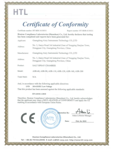ASR鹽霧試驗箱技術信息 2024-05-20